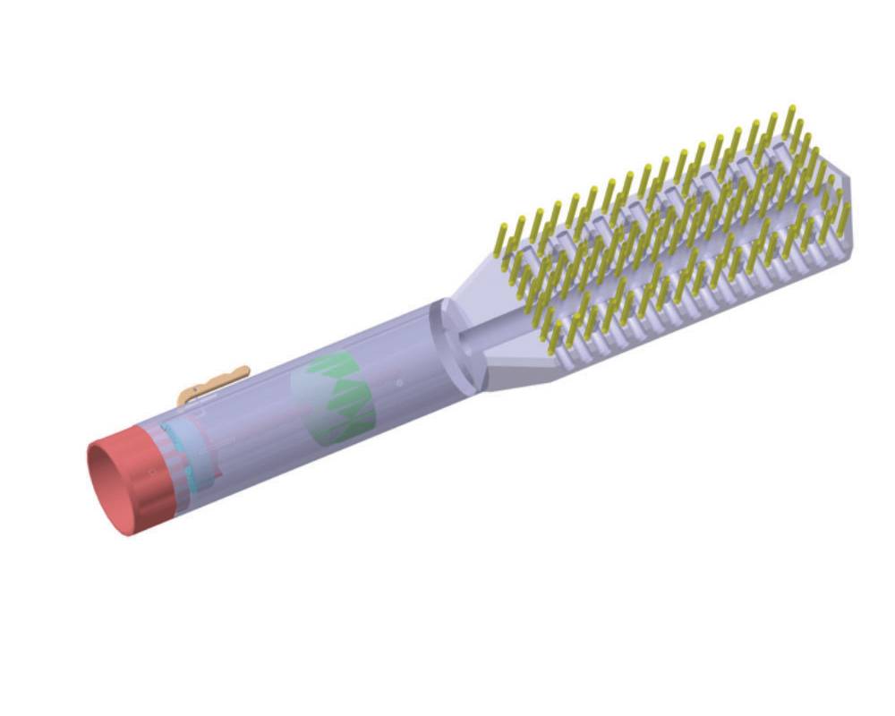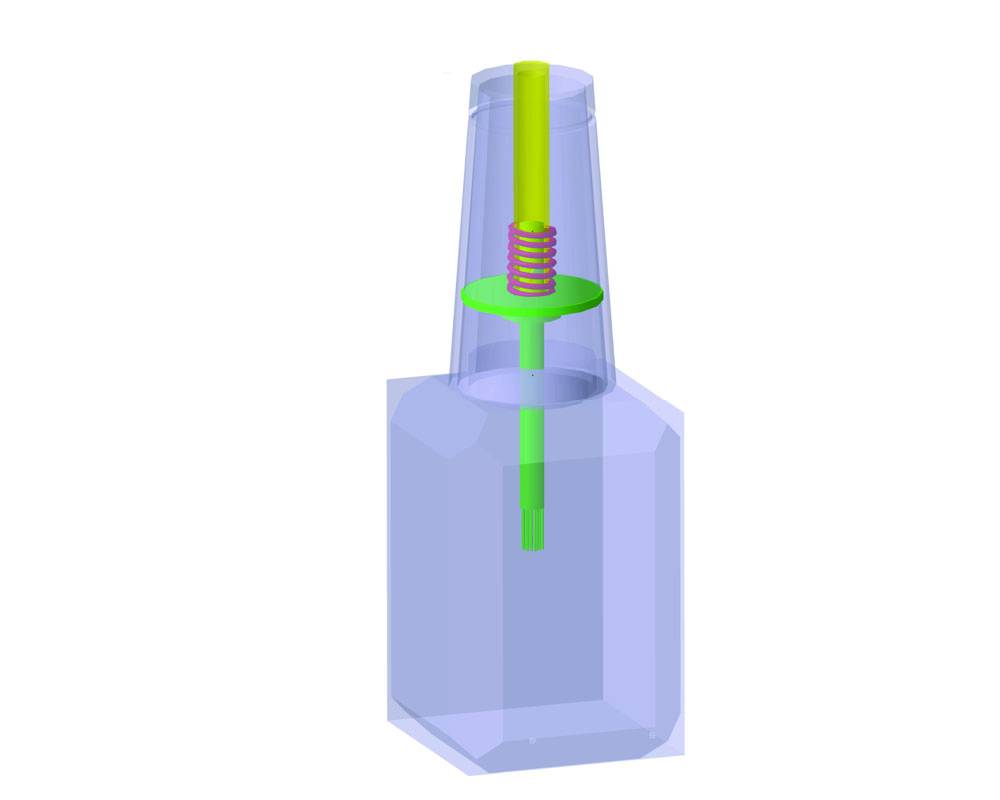 A Simple mechanical combination of a plunger and spring. The compression generated by the plunger in the cap when pressed pushes the dilution liquid in the polish container.