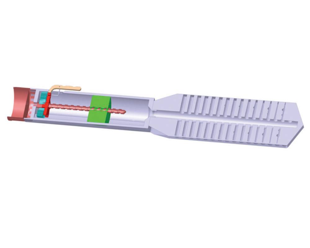 The compression generated by the piston in the chamber oozes the fluid out of the exit pores in the brush thread heads.
