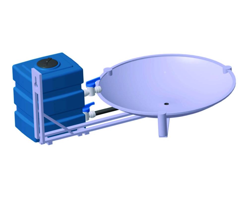Complete Mechanical combination of a water bowl and a disposal storage tank placed within a frame holding it onto a wall/railing etc.